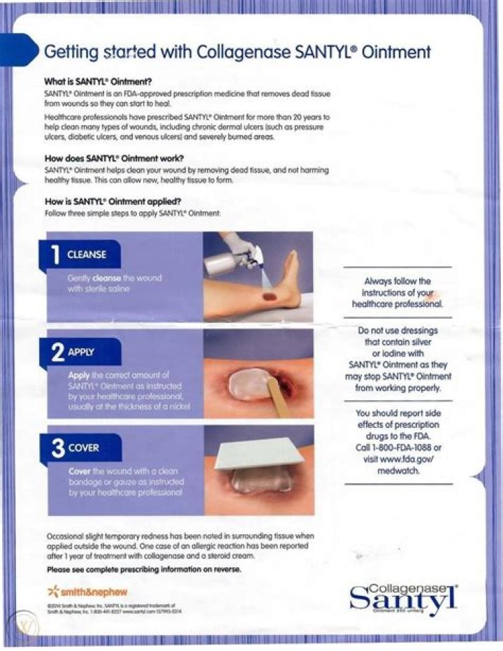 SANTYL Ointment is an FDA-approved prescription medicine that removes dead tissue from wounds so they can start to heal.