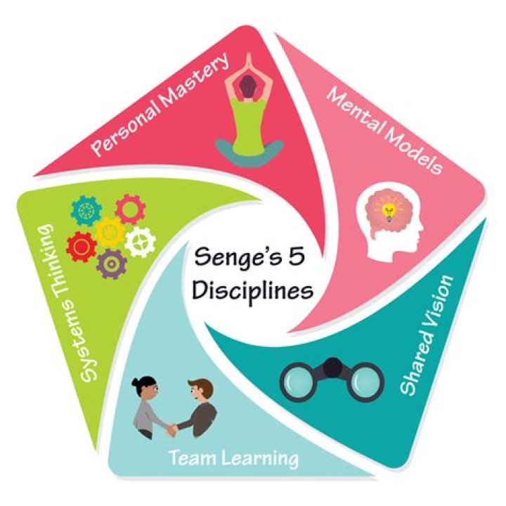 These five disciplines: A shared Vision (1), Mental Models (2), Team Learning (3), Personal Mastery (4) and System Thinking (5). The fifth Discipline, System Thinking, is the one discipline that binds the other four and therefore the discipline where the focus of Change Management should be.