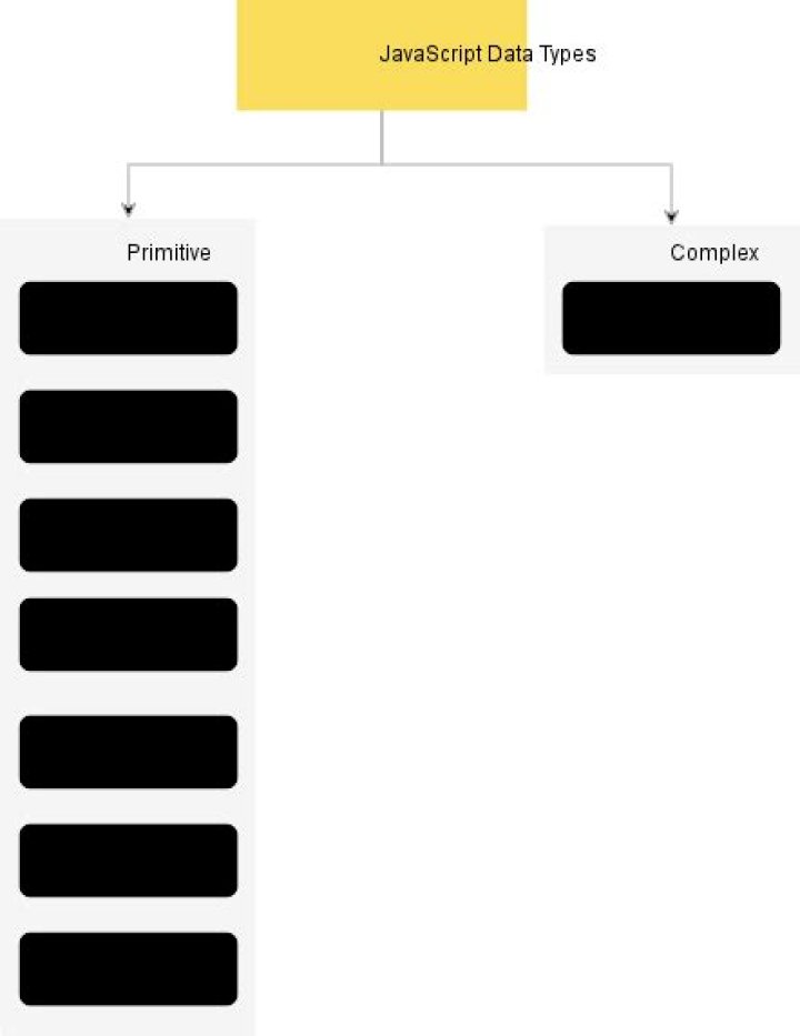 JavaScript has primitive and non-primitive data structures. Primitive data structures and data types are native to the programming language. These include boolean, null, number, string, etc. Non-primitive data structures are not defined by the programming language but rather by the programmer.