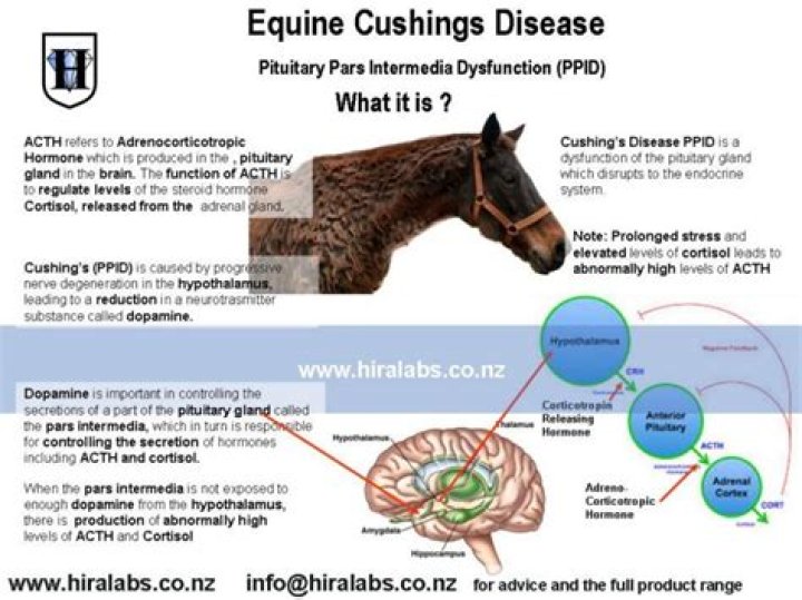 PPID is caused by degeneration of neurons that affect the production of hormones such as adrenocorticotrophic hormone (ACTH). Common clinical signs include a long, curly hair coat, delayed shedding, loss of muscle, poor immune function, and laminitis