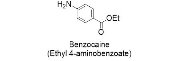 Benzocaine is a chemical compound derived from para-aminobenzoic acid and ethanol. It is a white, odorless, crystalline powder. It acts on neuronal membranes and blocks nerve signals in the body. Its numbing effects are temporary.